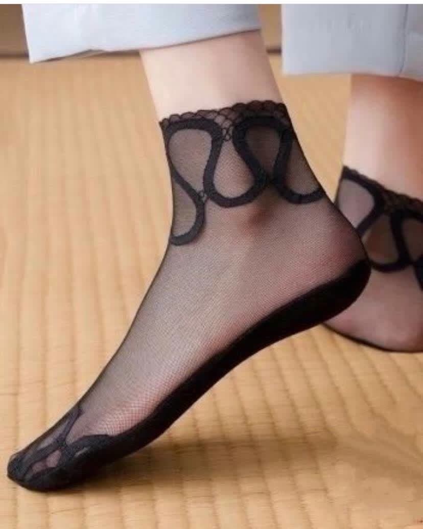 جوراب زنانه دو ربع لب گیپوری کف استپدار